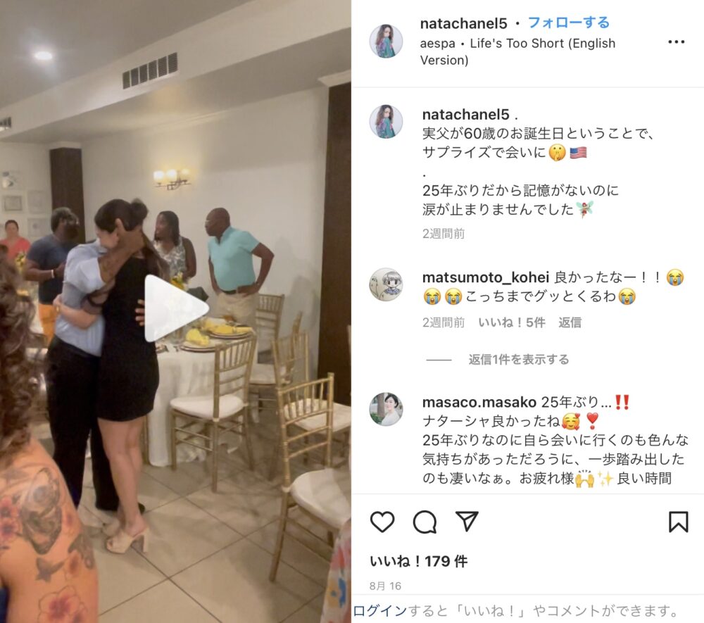 また、インスタ投稿のコメント欄を確認したところ、A子さんの実名はナターシャさんで間違いないことが分かります。