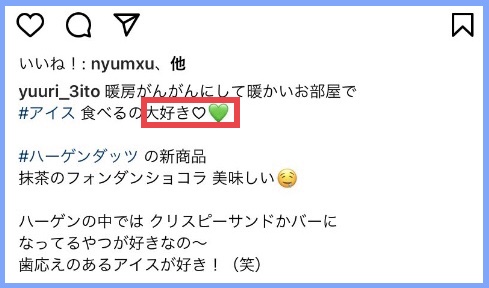 2つ目の匂わせ同様、本髙さんのメンバーカラー•緑のアイスを食べている様子が写っておりますね。